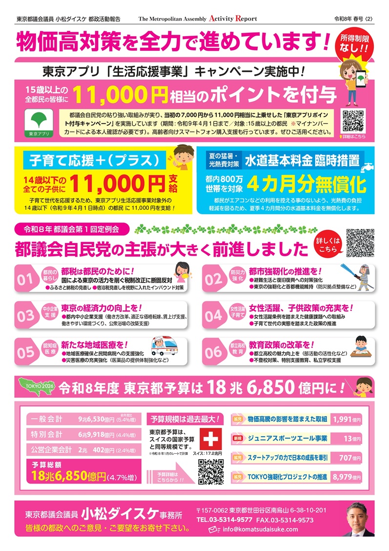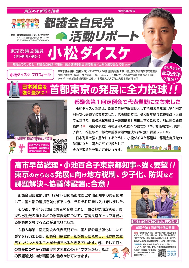 小松ダイスケ都政レポート 令和8年春号をアップしました